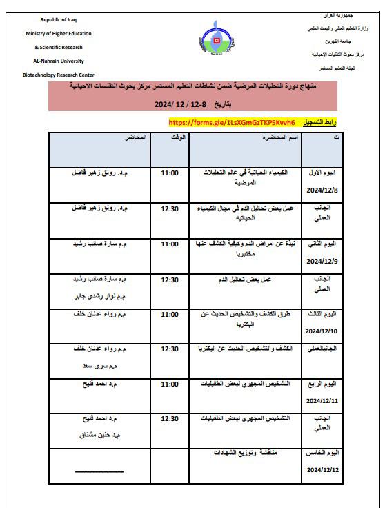 مناقشة علمية شاركت الاستاذ المساعد الدكتورة غيداء حسين عبد الرحيم، التدريسية في قسم البيئة لمركز بحوث التقنيات الاحيائية/ جامعة النهرين، عضواً مناقشاً ضمن لجنة الخبراء المشكلة لرسالة ماجستير الباحث محمد نوري دوحي ، من كلية التقنيات الاحيائية، الجامعة نفسها، وكانت الرسالة بعنوان: “Molecular detection and sequencing of fluoroquinolons resistance gene and antibiotic resistance profile of Enterococcus spp.isolated from clinical samples in Babel/Iraq”. وهدفت الرسالة الى دراسة جينات المقاومة لدى بكتيريا Enterococcus spp. ضد المضادات الحيوية للبكتيريا المذكورة والمعزولة سريريا من مرضى في مستشفيات محافظة بابل /العراق. وتمت المناقشة في معهد الهندسة الوراثية والتقنيات الأحيائية للدراسات العليا/جامعة بغداد، ويعد هذا التعاون ضمن الجهود العلمية المشتركة لتعزيز البحث العلمي وتبادل الخبرات بين جامعتي بغداد والنهرين.