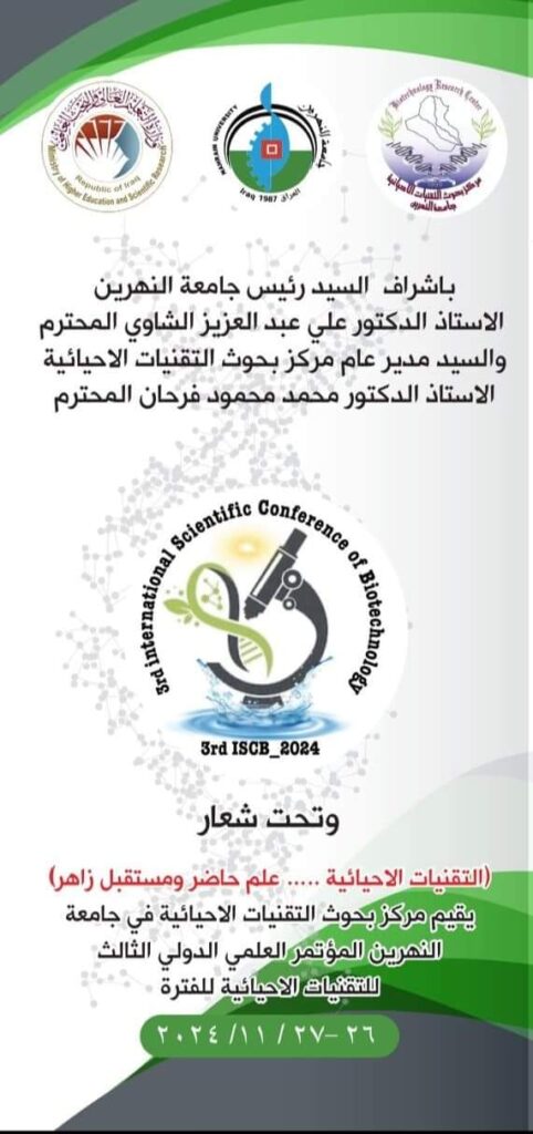 يسر مركز بحوث التقنيات الأحيائية ان يدعوكم للمشاركة في المؤتمر العلمي الدولي الثالث و ذلك في رحاب جامعة النهرين – بغداد – العراق للفترة من ٢٦-٢٧ من شهر تشرين الثاني ٢٠٢٤ . محاور المؤتمر: -التقنيات الاحيائية الطبية والصحية -التقنيات الاحيائية البيئية -التقنيات الاحيائية النباتية -التقنيات الاحيائية الصيدلانية والنانوية -التقنيات الاحيائية المجهرية التقنيات التطبيقية والمعلوماتية الحيوية أهداف المؤتمر: ١-توفير منصة وبيئة مناسبة للعلماء والباحثين من مختلف انحاء العالم لتبادل نتائج ابحاثهم وخبراتهم وعرض احدث التطورات والابتكارات في مجال التقنيات الاحيائية. 2-توظيف بحوث التقنيات الاحيائية التطبيقية في ايجاد حلول للمشاكل التي تواجه القطاع الصحي والبيئي والزراعي والصناعي. 3-توفير المناخ العلمي للتعاون بين مؤسسات البحث العلمي المهتمة بالتقنيات الاحيائية داخل العراق وخارجه. 4- تشجيع البحث العلمي والابتكار في مجال التقنيات الاحيائية. 5- التوعية بأهمية التقنيات الاحيائية وتطبيقاتها في مختلف المجالات. رسوم المشاركة: – 50,000 دينار عراقي للمشاركة في بحث (بوستر او القاء) – 25,000 دينار عراقي شهادة حضور الموقع الرسمي للمؤتمر: Home للتسجيل في المؤتمر يرجى ضغط الرابط ادناه: https://forms.gle/E3kWS1VLRScenpoGA للتواصل والاستفسار الاتصال على الارقام 00964-7707766148 00964-7802260160 (زين كاش) – عند الحصول على القبول الاولي يمكن حينها من تقديم البحث الى احد المجلات الخاصة بالمؤتمر وهي: 1- (المجلة الاردنية للعلوم الصيدلانية – سكوباس)Jordan Journal of Pharmaceutical Science https://jjournals.ju.edu.jo/index.php/jjps 2- مجلة مركز بحوث التقنيات الاحيائية / جامعة النهرين (Journal of Biotechnology research center) https://www.jobrc.org/index.php/jobrc تستوفي المجلة اجور النشر مباشرة عند قبول البحث الذي سيخضع لتقييم مشترك بين لجان المؤتمر والمجلة توقيتات مهمة: – آخر موعد لتقديم ملخص البحث 15/8/2024 – آخر موعد لتقديم البحوث كاملة 1/9/2024 – الاعلان عن البحوث المقبولة في المؤتمر 15/10/2024 سيتم نشر ملخصات البحوث المقبولة في الدوار الالكتروني للمؤتمر (القبول في المؤتمر لا يعني القبول للنشر في مجلات المؤتمر) ستقام الفعاليات التالية على هامش المؤتمر: 1- Exhibition for medical and laboratory equipment’s and reagents (معرض للاجهزة والمستلزمات الطبية والمختبرية ) 2- Poster session (معرض للبوسترات) 3- Workshops (ورش عمل) 4- Scientific lectures(محاضرات علمية) نتمنى من حضراتكم مشاركة هذا الاعلان لزملائكم الباحثين ونرحب بمشاركتكم على امل اللقاء بكم في موعد اقامة المؤتمر ان شاء الله.