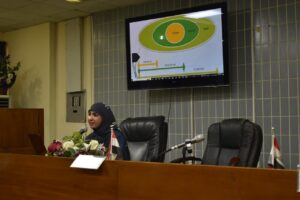 بعنوان (الملوثات الكيميائية والحيوية ترسبه في اللحوم وتاثيرها على صحة الانسان)،اما المحاضرة الثالثة قدمتها( م.م مريم فؤاد) وعنوانها (تعزيز التواصل الغير لفظي في بيئة العمل).