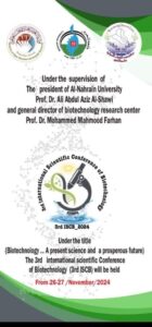 يسر مركز بحوث التقنيات الأحيائية ان يدعوكم للمشاركة في المؤتمر العلمي الدولي الثالث و ذلك في رحاب جامعة النهرين – بغداد – العراق للفترة من ٢٦-٢٧ من شهر تشرين الثاني ٢٠٢٤ .