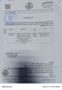وهدف كتاب الشكر والتقدير إلى تثمين جهود التدريسيين لنشر البحث الموسوم Influence of the rs4238001 Genetic Polymorphism of the SRB1 Gene on Serum Lipid Levels and Response to Rosuvastatin in Myocardial Infarction Iraqi Patients، في مجلة Biochemical Genetics التابعة لدار النشر Springer nature ،والواقعة ضمن الربع الثاني Q2.