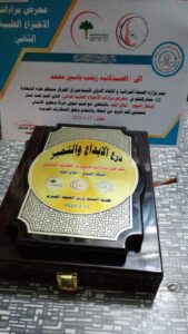 كرمت وزارة الصحة الاستاذ الدكتورة زينب ياسين، التدريسية من قسم التقنيات الاحيائية النباتية،في مركز بحوث التقنيات الاحيائية/جامعة النهرين، بدرع الابداع والتميز، وشهادة مشاركة من قبل وزير الصحة.